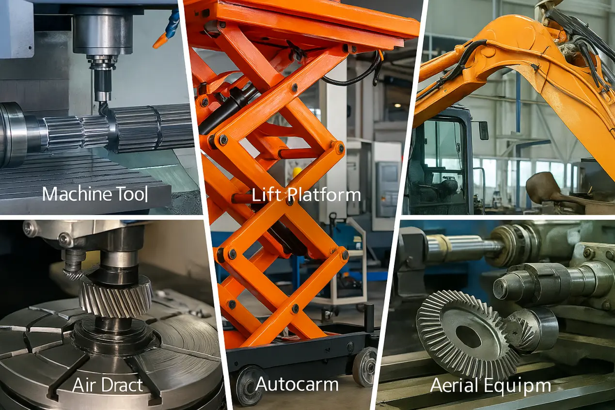 Вообичаените индустриски апликации исто така вклучуваат: мали машински алати, опрема за пакување, платформи за подигање, машини за мешање, земјоделски возила и градежна опрема. Во оваа опрема, не може целата моќност да се емитува во права линија, а косината опрема ја игра улогата на „вртење во аголот и продолжување на преносот“.