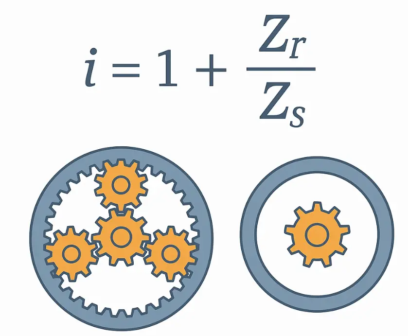 Формулата за пресметување на односот на пренос на планетарен редуктор всушност не е комплицирана. Најчеста структура е тоа што запчаникот за сончање е активен, внатрешниот прстен е фиксиран, а носителот на планетата е излез. Според оваа структура, формулата за пресметување на односот на пренос е: